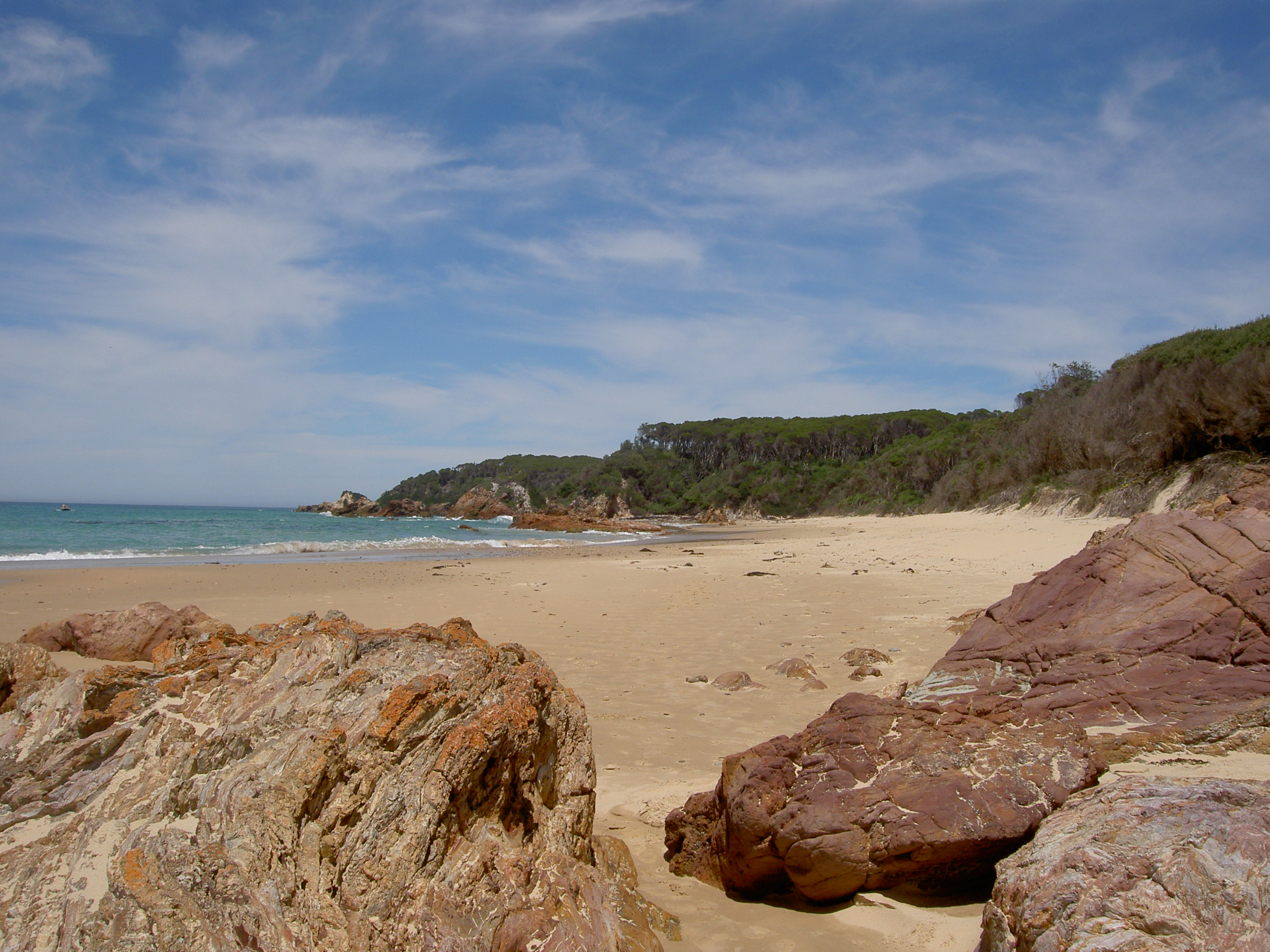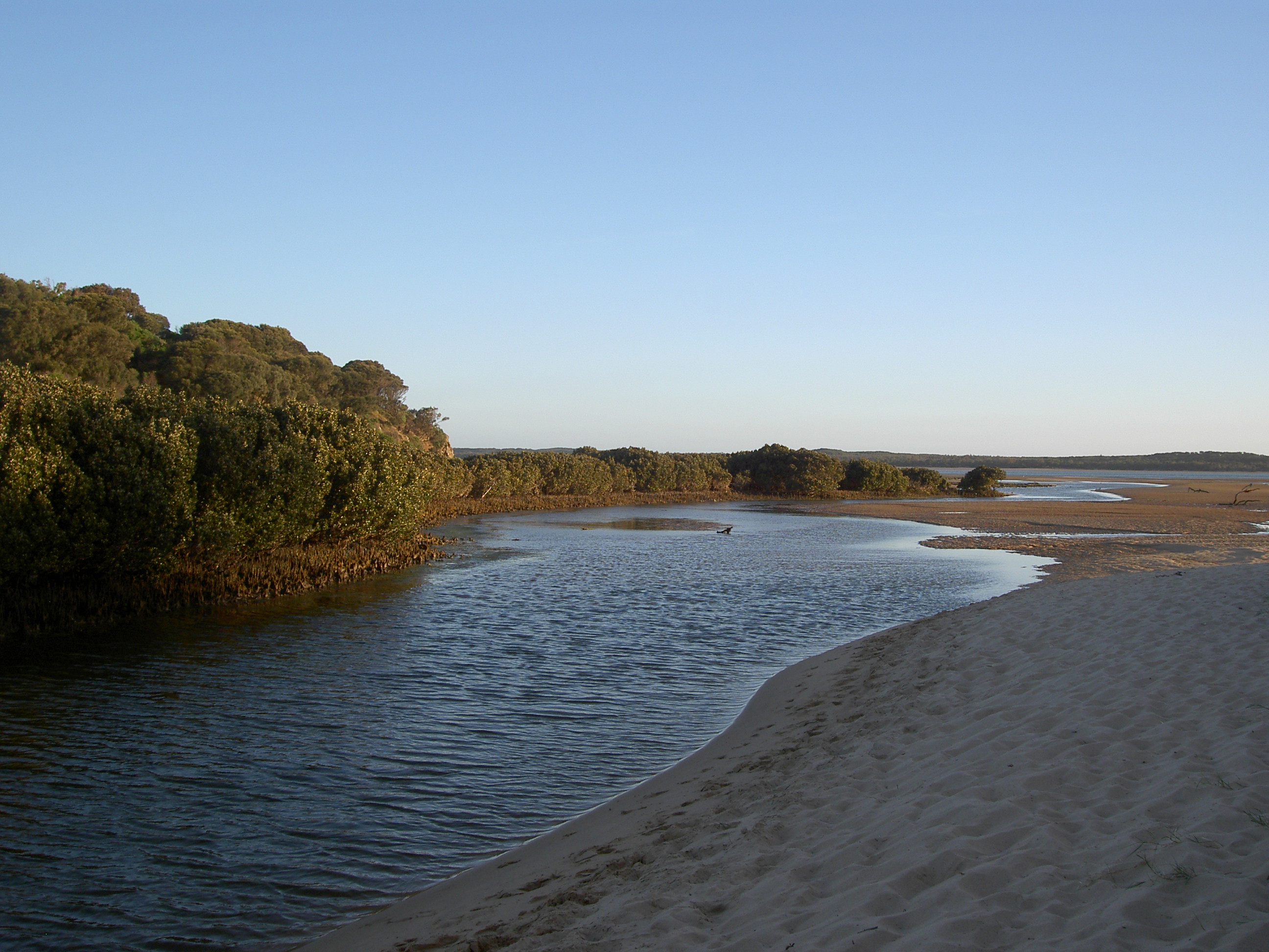 father, and we always caught a few bay trout and silver trevally. One time, further upstream in the creek, we caught the biggest black bream I have ever seen. I think it was one of the children, then aged three and six, who cast in, only a few centimetres into the water. The bream took off across the creek, and it took more than 10 minutes to reel it in. I doubt there has been a larger fish caught since, even though the creek is one part of the inlet that appears not to have changed a bit! We decided not to walk further on this first evening, and returned to the tent for a chargrilled steak for dinner. We were surprised how cold it got on that first evening, and not having used the tent for a while, nor properly airing it before we went to bed, we froze. But getting up at 3.00am for a necessary toilet trip, we were rewarded for the cold night by the most glorious show of the Milky Way imaginable. Not a cloud in the sky, crystal-clear air, and starlight you could almost read by. Brilliant! And very much worth enduring the cold trip to the loo!