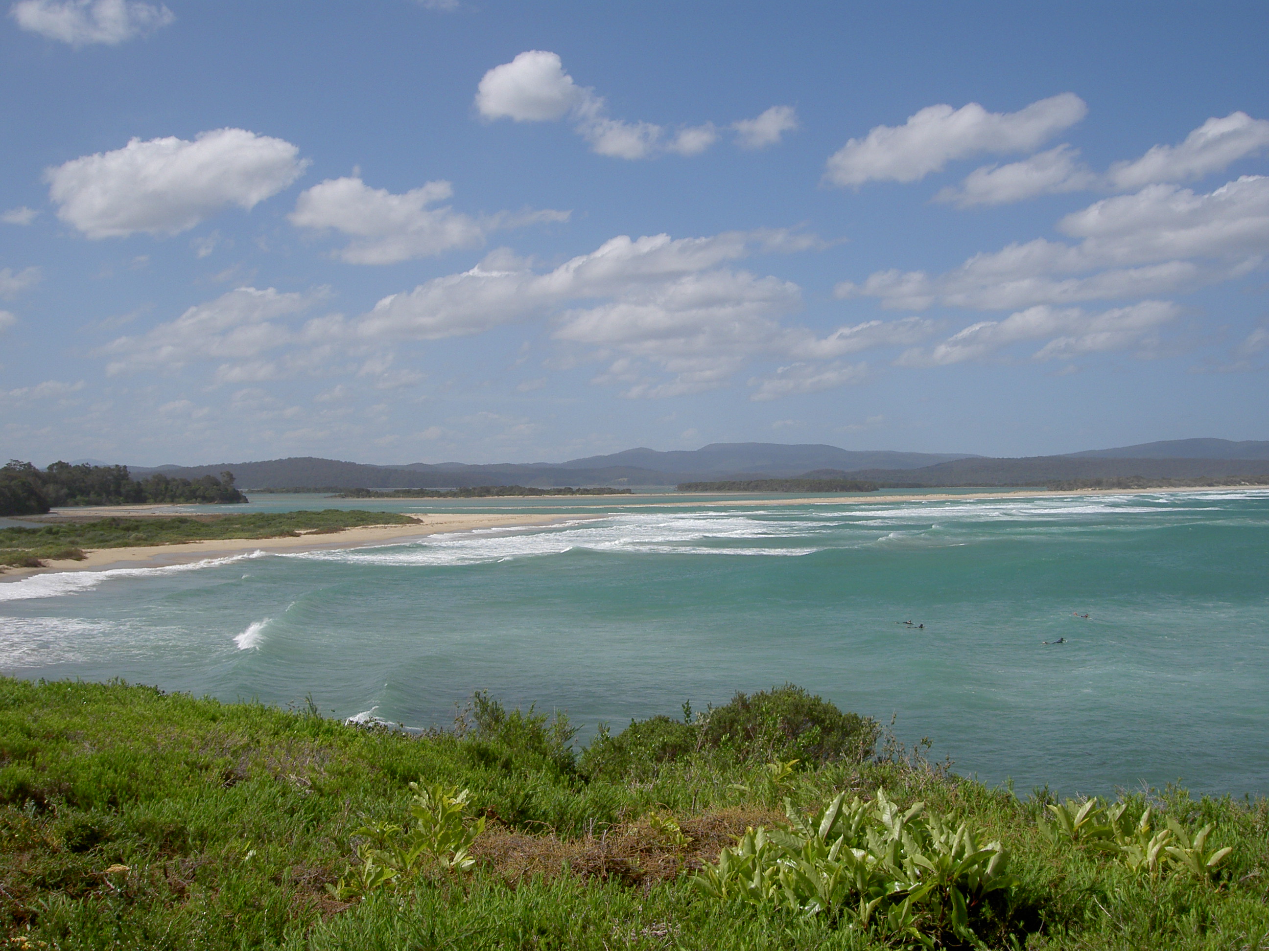 It was necessary to find a shady spot which also had a bit of breeze, which we did, and where I started this blog. But before it got too hot, we did walk through the bush to Screw Creek, over the bridge, and past the bench erected in memory of my sister’s late father-in-law. The bench was originally located near the beach on the western side of the township, but was relocated to its present position when erosion of the beach threatened to wash the bench into the sea. Our walk then took us to the top of Townsend Bluff, which commands great views of the inlet, both inland and toward the ocean.