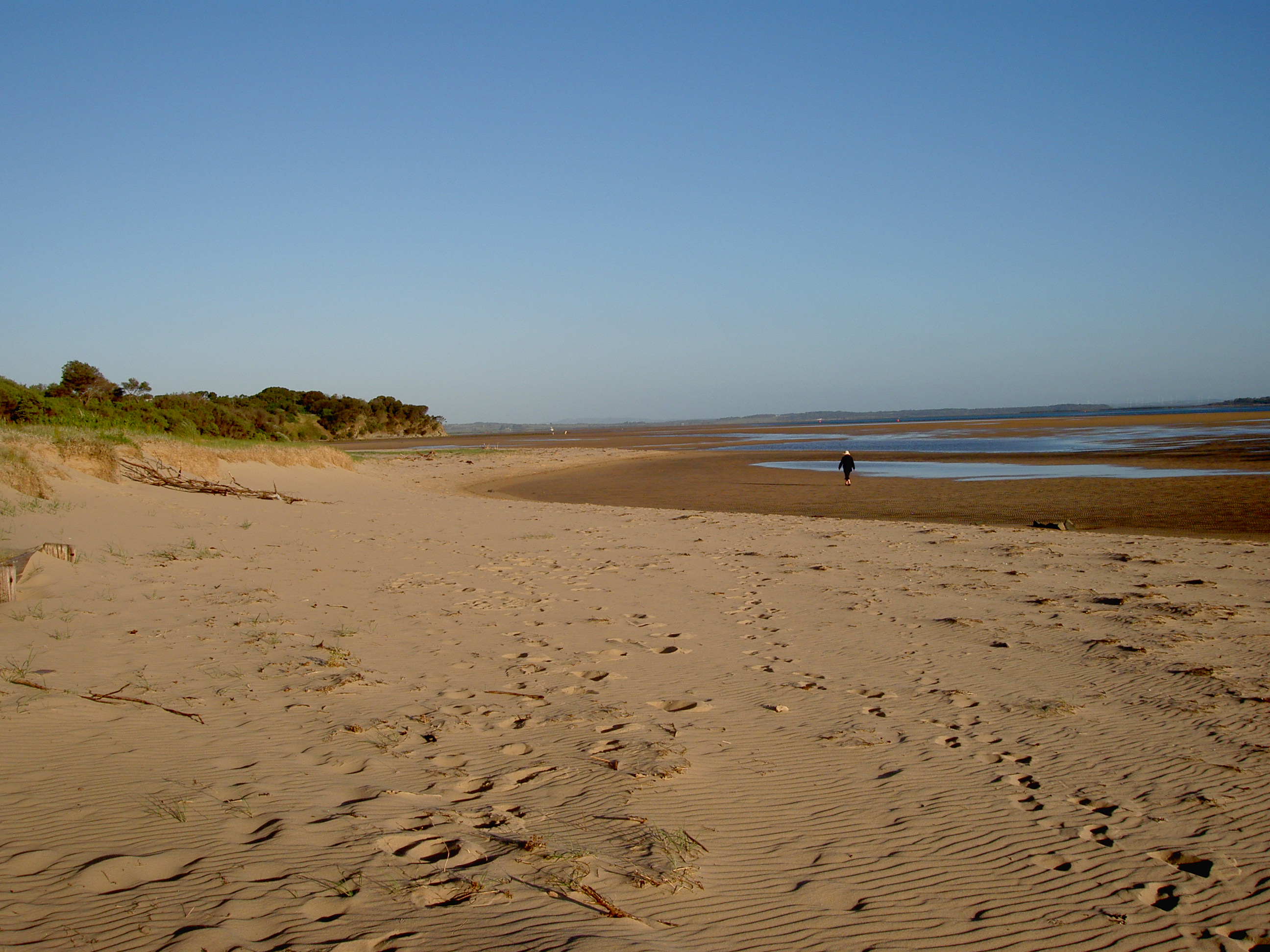 Inverloch, on the south-east coast of Victoria, just to the east of Port Phillip and Westernport bays and about 140K from Melbourne, is a delightfully small coastal holiday resort, with a resident population of about 5,000.This doubles during the summer holiday season and on ‘long weekends’. Over the March Labour Day weekend, there is a very successful and enjoyable Jazz Festival, at which the bands play mostly traditional jazz. There is very little industry in the area, other than those that service the tourist trade; and agricultural activities, including cattle and wineries. There are, of course, many rental holiday apartments, cafes, touristy shops, a couple of pubs, and caravan parks. We stayed for a few days at the Inverloch Foreshore Camping Ground, which is owned by the local council, but managed by the managers of the adjacent Big 4 Caravan Park. One of the main features of the Foreshore Camping Ground is that is caters exclusively for travelling caravans and campers—-there are no permanent on-site vans or cabins—-which gives it a much more open and relaxed feel. At the moment, it is less than 10% full, this being just before the main holiday season. There were a few groups of caravans and tents, perhaps being family groups, or perhaps some clubs. But there was plenty of space and it was all very quiet. The toilet facilities were as clean as any we have experienced, and entry to them is controlled by a plastic wrist band with some embedded programmable electronic device, to prevent non-campers, and there were many of them on the beaches, using the facilities. As its name suggests, The Foreshore is right there—on the foreshore, with only a shrub-cladded sand dune between the park and the beaches of Anderson Inlet.
