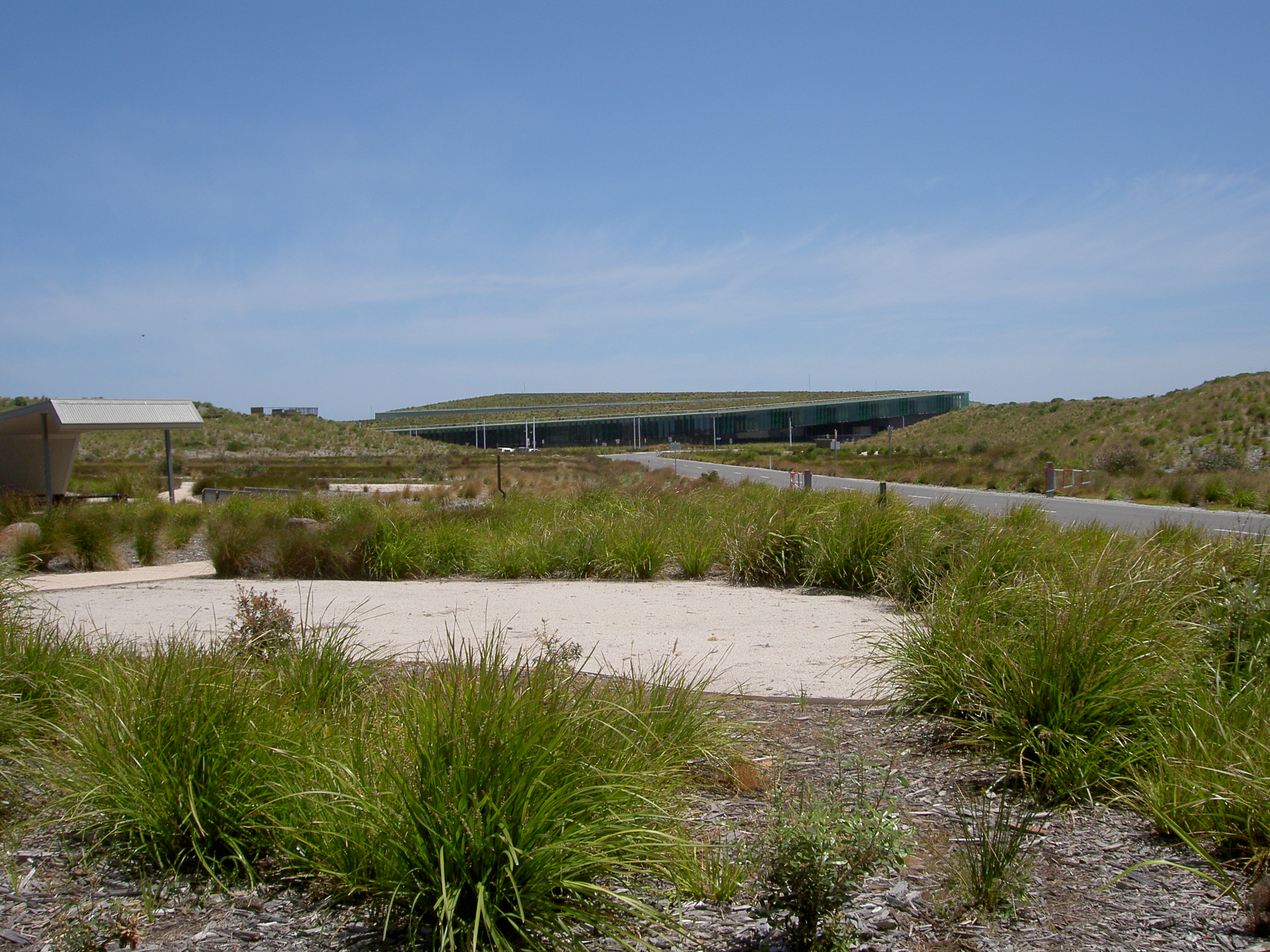On Saturday, daughter Helen and her partner Dragan came from Melbourne to spend the day with us; and my sister Wendy and her husband and younger son also paid us a short visit. We had a lovely day. Whilst some sat around talking, Dragan and I drove around the area looking for somewhere nice to fish. On the way, we called into the Desalination Plant near Wonthaggi. Controversially built at great expense, Victorians are paying about a million dollars a day for it, and so far, two years after its completion, not a drop of water has entered the system! But I have to admit it is a magnificent building from an architectural point of view. Far from being a blot on the coastal landscape, as many feared it would be, it is almost invisible, blending very well into the sand dunes, and with its roof a living plantation of local vegetation.