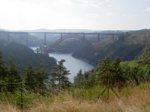 We were very fortunate to have caught up with these friends, as they were only in Dijon for a week themselves due to Gaby having a medical appointment. Otherwise they would have been miles away on the Atlantic coast. So, even though our visit was very brief, we were lucky to have had it at all. So on the morning of the 6th, we said our farewells, vowing to keep in touch, and we headed on our way. Because of the major tram-works, René was kind enough to be our pilot, and we followed him across town and to the major auto-route we needed. And so we went slightly south-west, via Autun, where we stopped for coffee, through Luzy, on to Bourbon-Lancy and thus to Moulins, and then directly south, picking up the toll-road that by-passed the very industrial town of Clermont-Ferrand. We would have liked to have stopped at a few of the more interesting places we by-passed, but we wanted to get as far south as we could, so that we would be left with only a couple of hours or so drive on the final leg to Argeles. We did stop at an “aire de repose’ about an hour before we reached Sévérac, from which we had a good view of the Viaduct de Garabit, which crosses the valley of the river Truyere (a tributary of the Lot). This railway bridge was designed and built in 1884 by Gustave Eiffel (of tower fame), and was a major engineering project for its time.